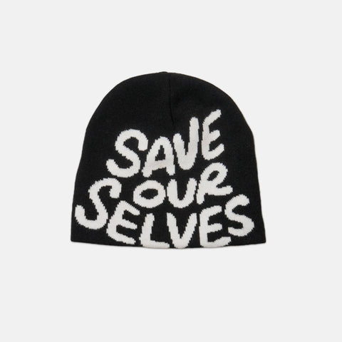 Beanies with the name of the game knitted straight in and woven labels to rep the brand. One size fits all.
